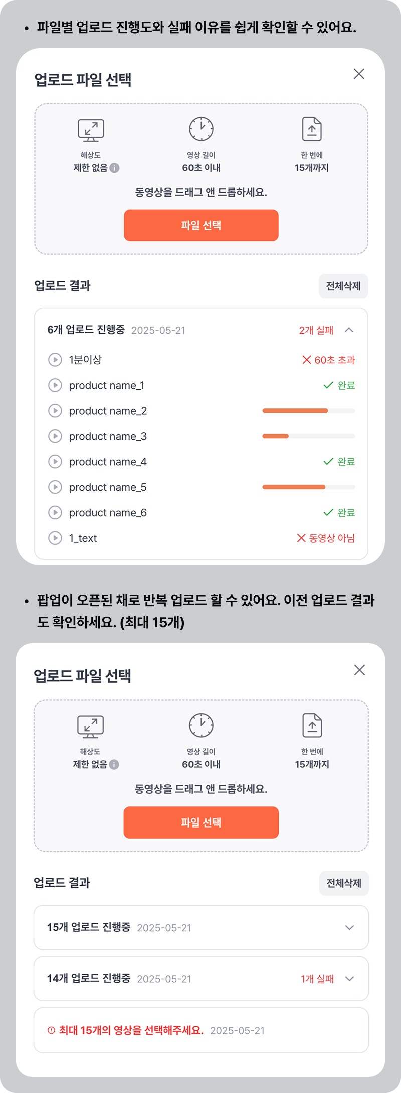 ✅ 업로드에 실패 이유를 바로 확인할 수 있어요.\